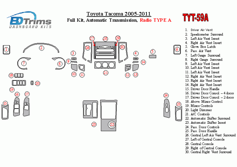 Toyota Tacoma 2005 - 2011 Dash Trim Kit