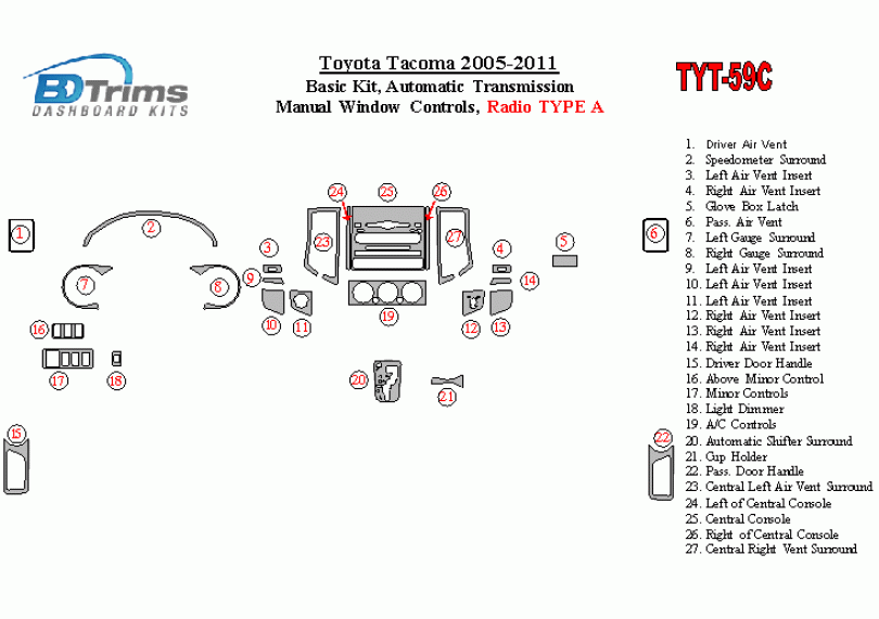 Toyota Tacoma 2005 - 2011 Dash Trim Kit