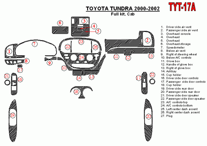 Toyota Tundra 2000 - 2002 Dash Trim Kit