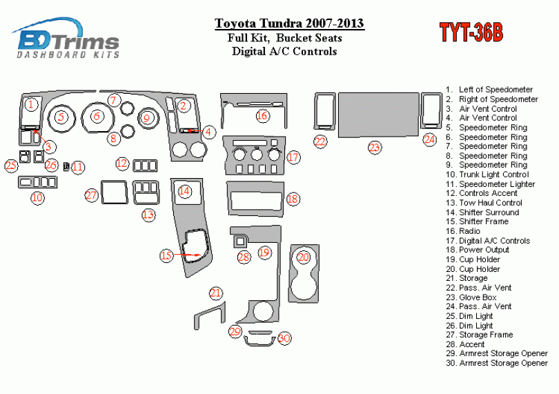Toyota Tundra 2007 - 2013 Dash Trim Kit