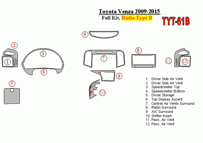 Toyota Venza 2009 - 2015 Dash Trim Kit