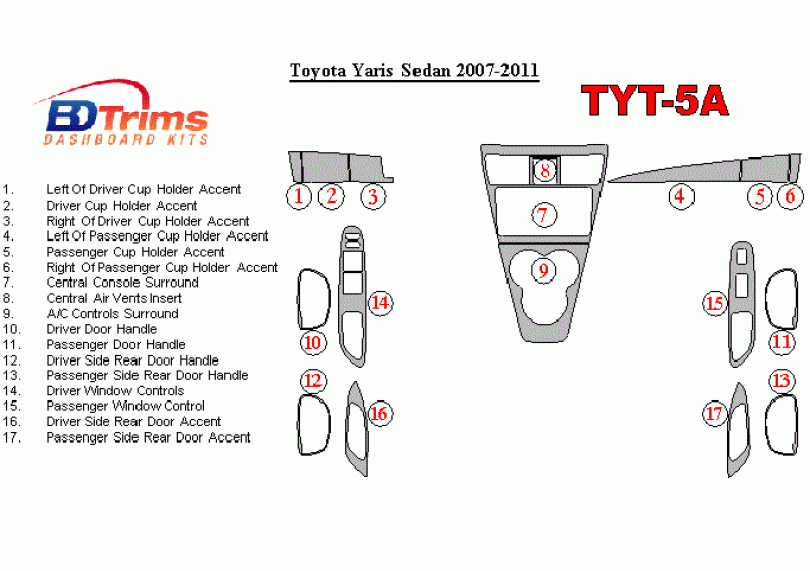 Toyota Yaris 2007 - 2011 Dash Trim Kit