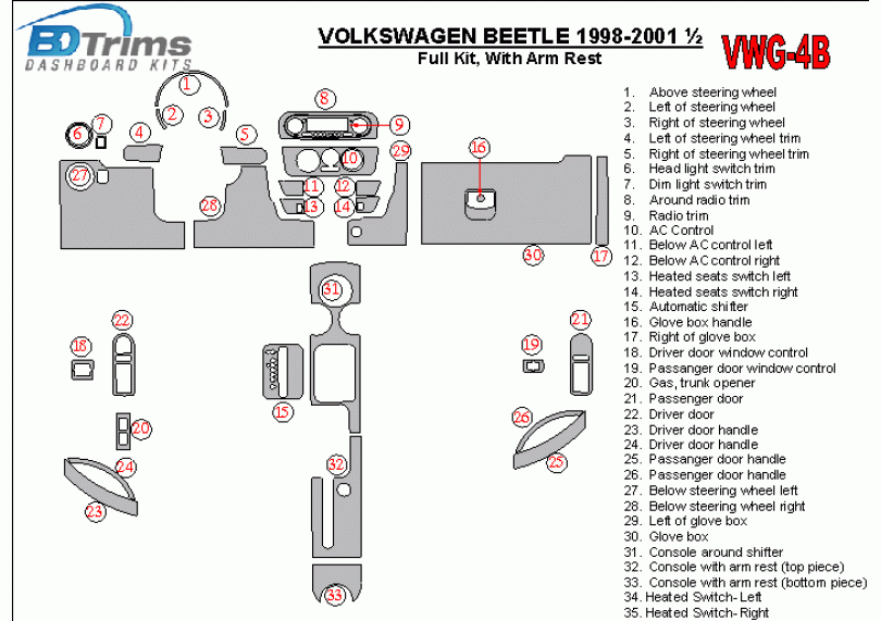 Volkswagen Beetle 1998 - 2001 Dash Trim Kit