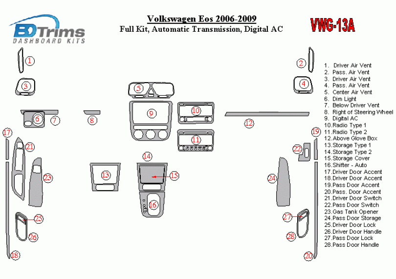 Volkswagen EOS 2006 - 2009 Dash Trim Kit