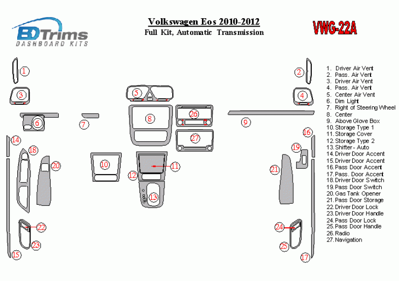 Volkswagen EOS 2010 - 2012 Dash Trim Kit