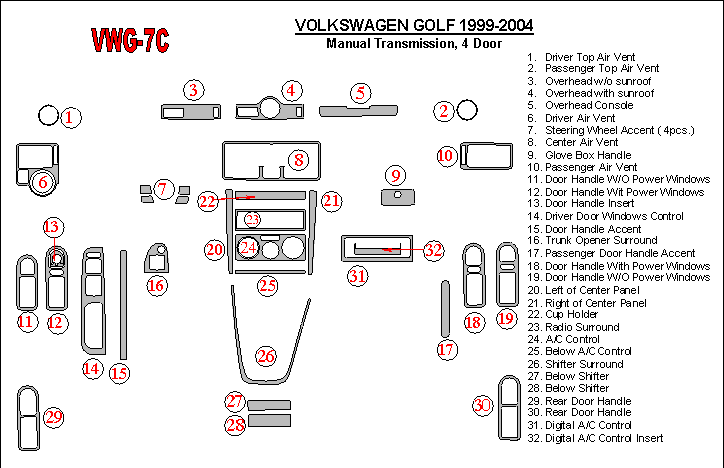 Volkswagen Golf 1999 - 2004 Dash Trim Kit