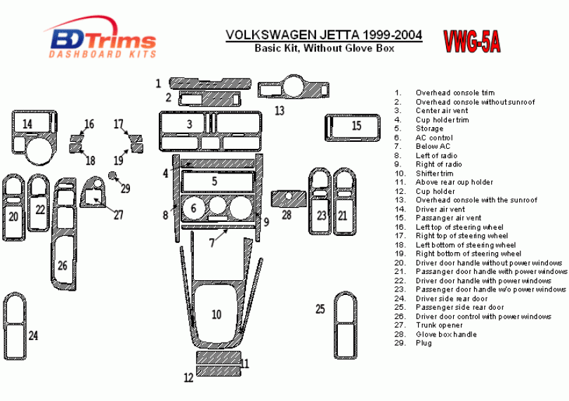 Volkswagen Jetta 1999 - 2004 Dash Trim Kit