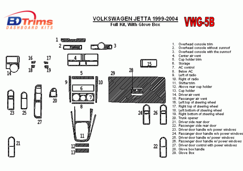 Volkswagen Jetta 1999 - 2004 Dash Trim Kit