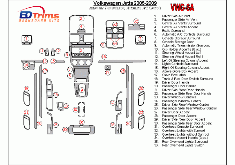 Volkswagen Jetta 2005 - 2009 Dash Trim Kit