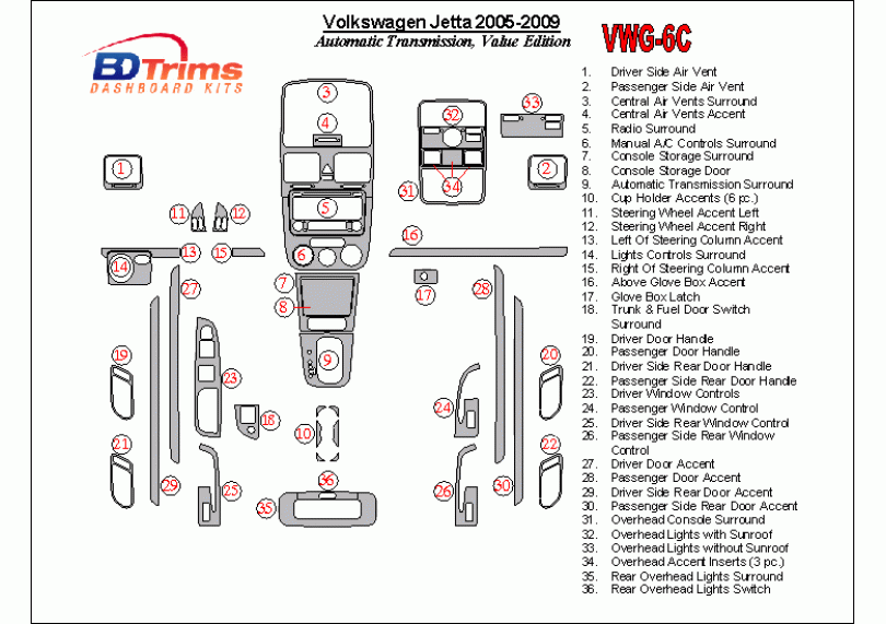 Volkswagen Jetta 2005 - 2009 Dash Trim Kit