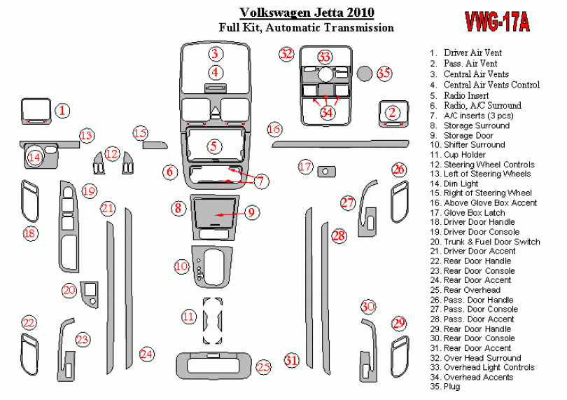 Volkswagen Jetta 2010 - 2010 Dash Trim Kit