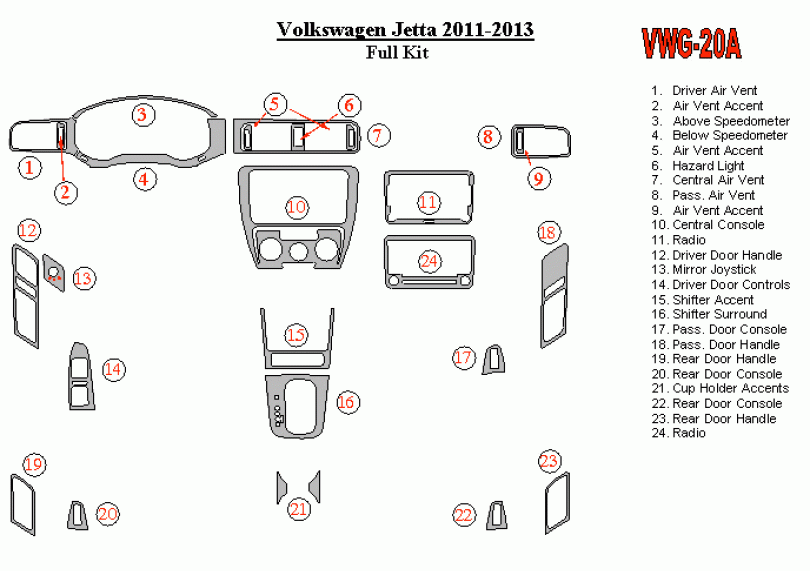Volkswagen Jetta 2011 - 2013 Dash Trim Kit