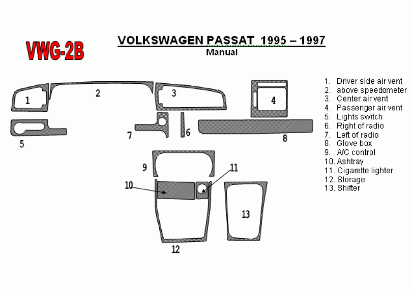 Volkswagen Passat 1995 - 1997 Dash Trim Kit