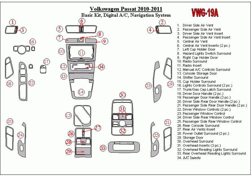 Volkswagen Passat 2010 - 2011 Dash Trim Kit
