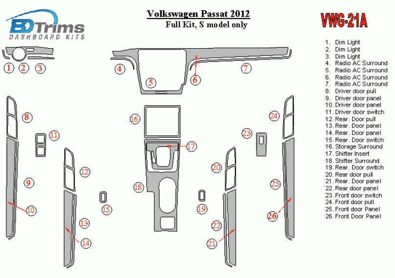 Volkswagen Passat 2012 - 2012 Dash Trim Kit