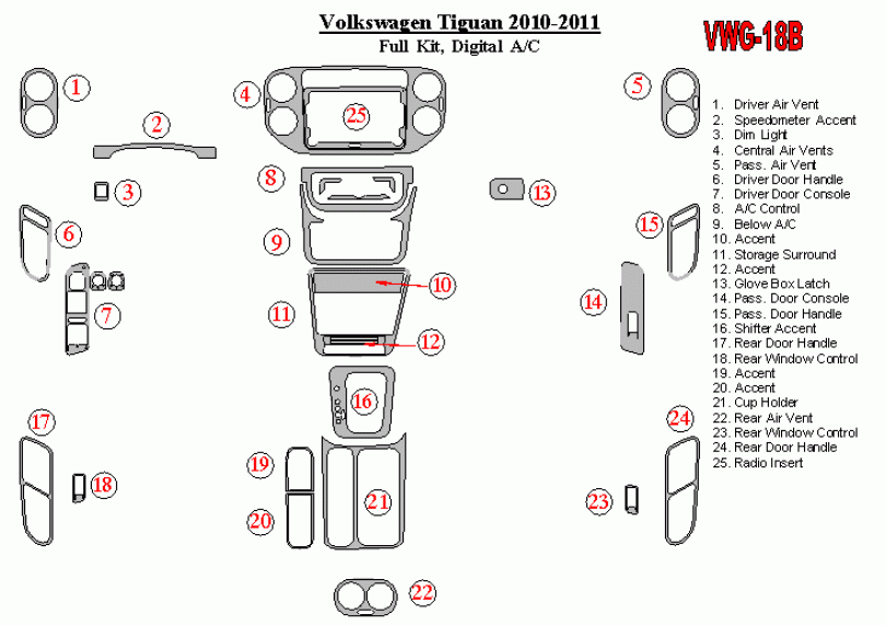 Volkswagen Tiguan 2010 - 2011 Dash Trim Kit