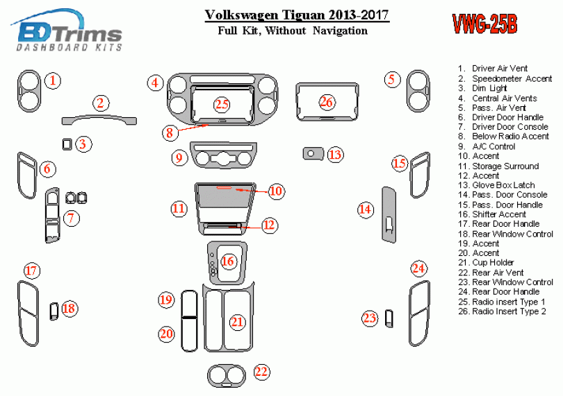 Volkswagen Tiguan 2013 - 2017 Dash Trim Kit