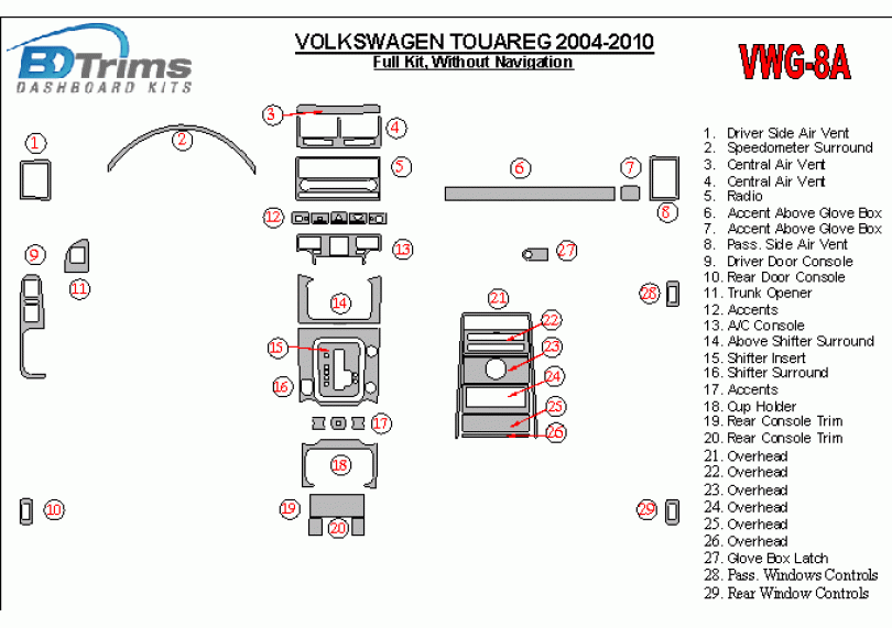 Volkswagen Touareg 2004 - 2010 Dash Trim Kit