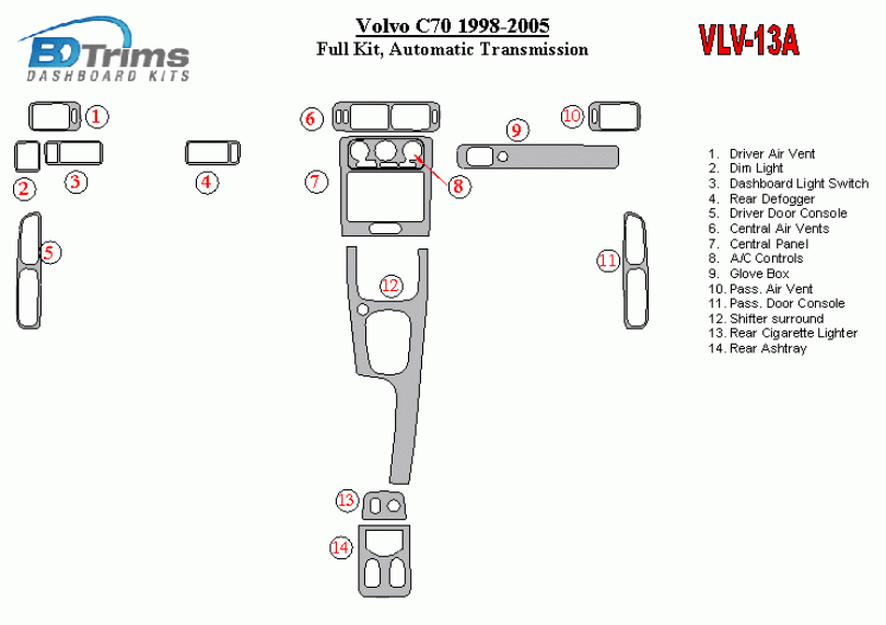 Volvo C70 1998 - 2005 Dash Trim Kit