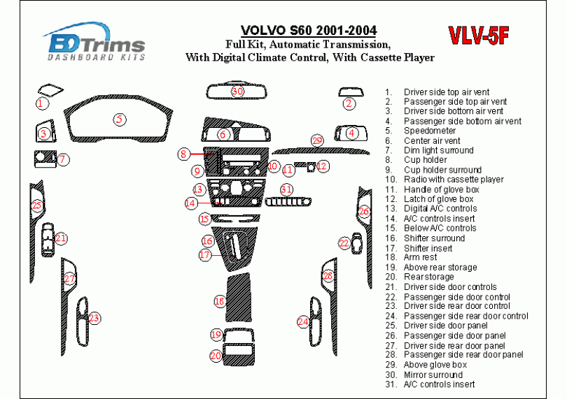 Volvo S60 2001 - 2004 Dash Trim Kit