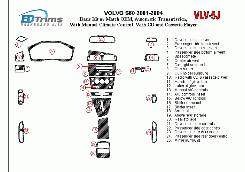 Basic Kit, Automatic, With Manual Climate Controls, With CD and Cassette Player, Match OEM, 25 Pcs.Materials