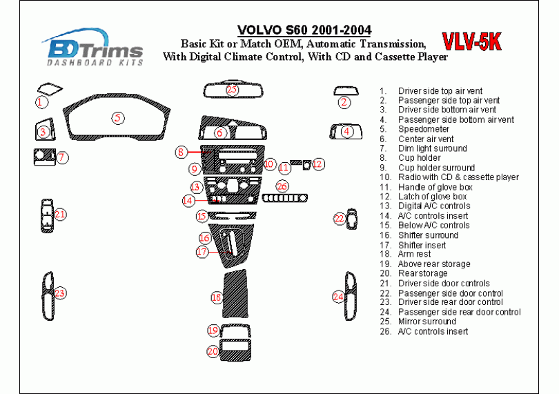 Volvo S60 2001 - 2004 Dash Trim Kit