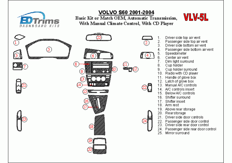 Basic Kit, Automatic, With Manual Climate Controls, With CD Player, Match OEM, 25 Pcs.Materials