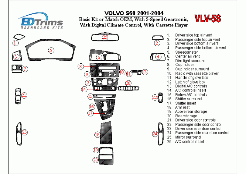 Volvo S60 2001 - 2004 Dash Trim Kit