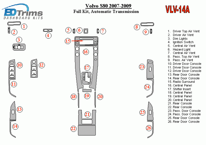 Volvo S80 2007 - 2009 Dash Trim Kit