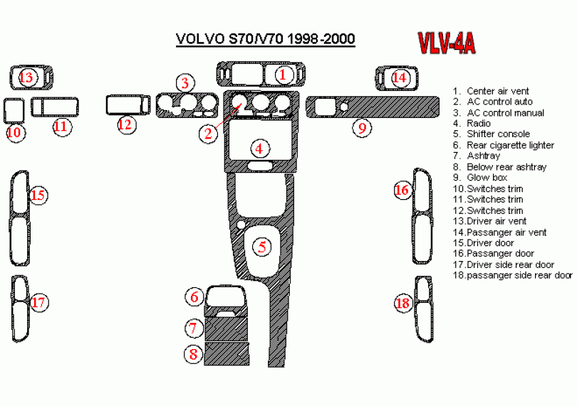 Volvo V70 1998 - 2000 Dash Trim Kit