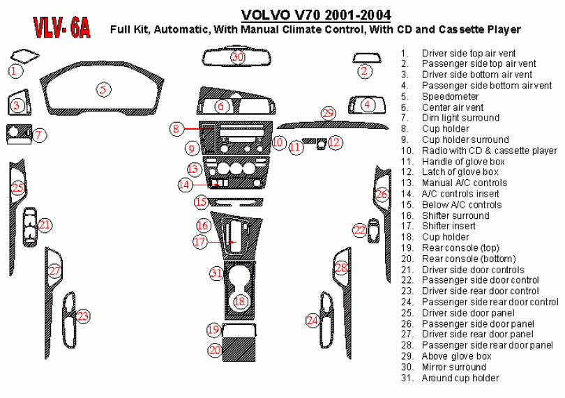 Volvo V70 2001 - 2004 Dash Trim Kit