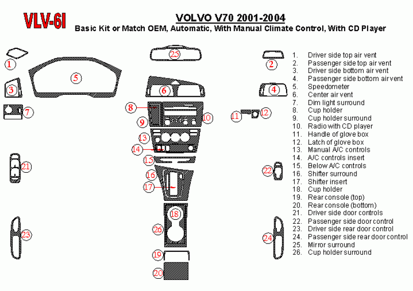 Volvo V70 2001 - 2004 Dash Trim Kit