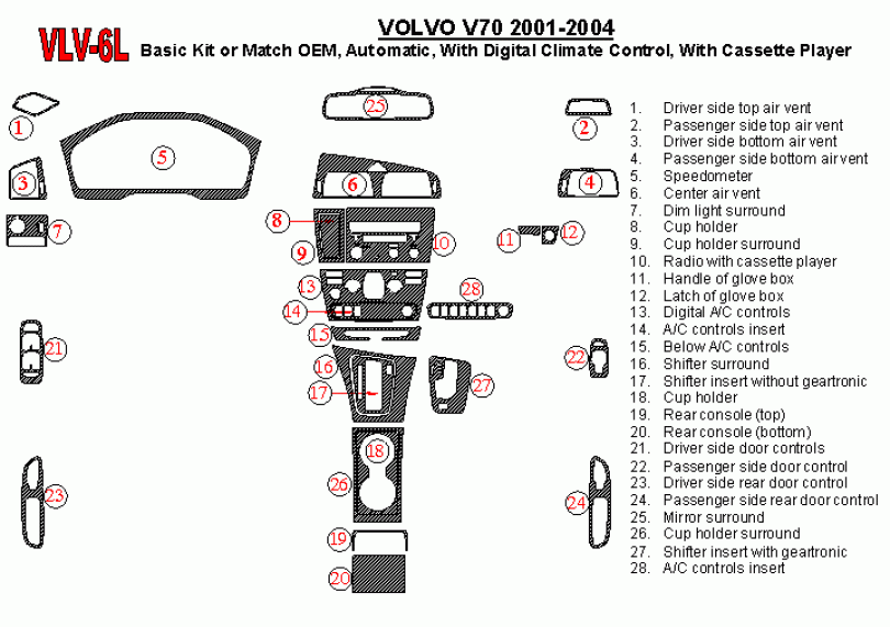Volvo V70 2001 - 2004 Dash Trim Kit