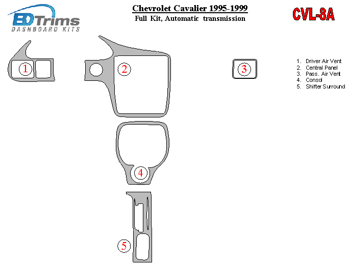 Chevrolet Cavalier 1995 - 1999 Dash Trim Kit