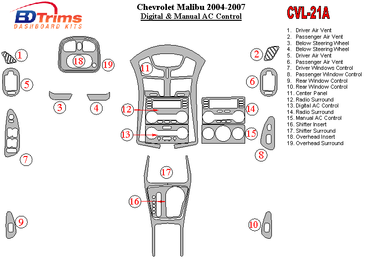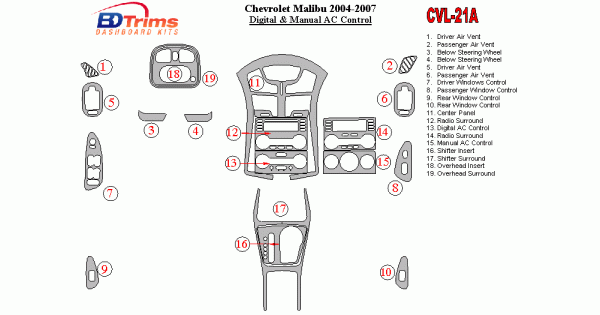 Chevrolet Malibu 2004 - 2007 Dash Trim Kit