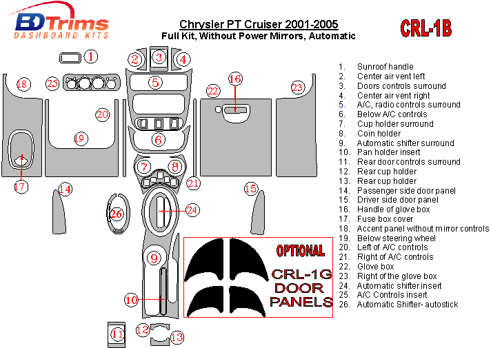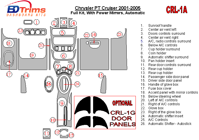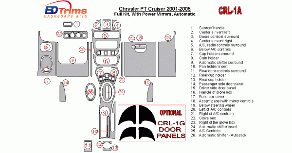 Chrysler PT Cruiser 2001 - 2005 Dash Trim Kit