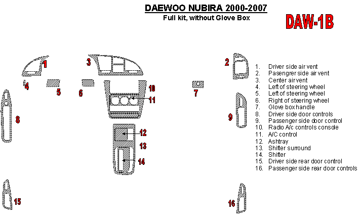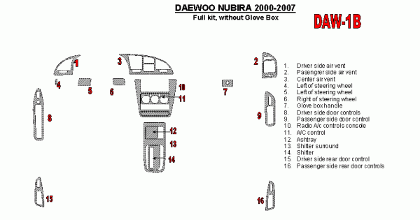 Daewoo Nubira 2000 - 2007 Dash Trim Kit