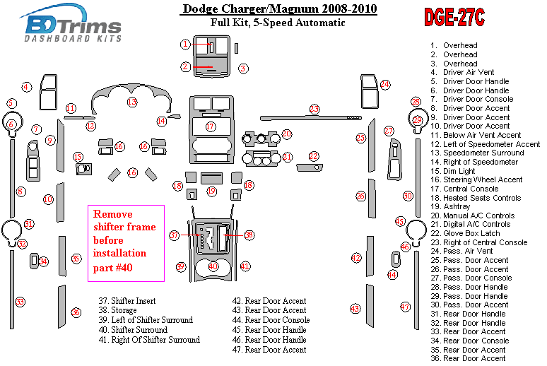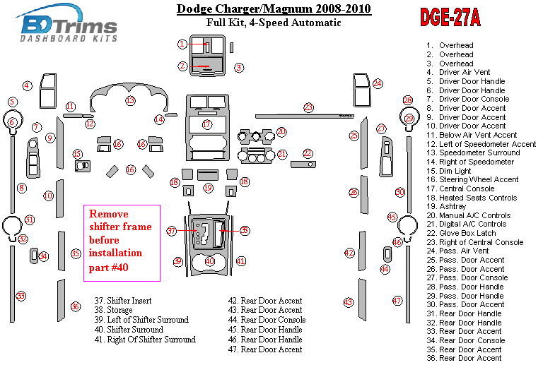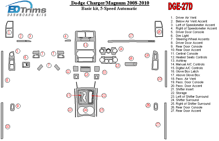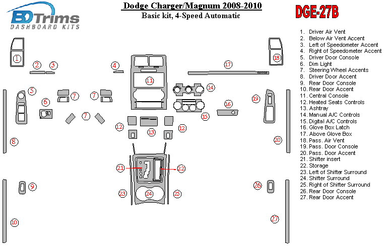 Dodge Charger 2008 - 2010 Dash Trim Kit