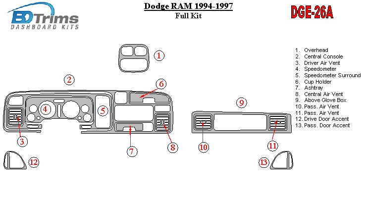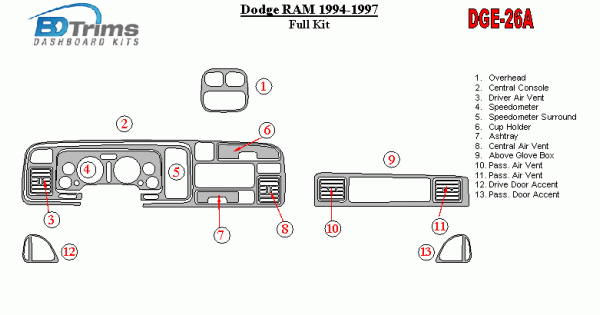 Dodge RAM 1994 - 1997 Dash Trim Kit