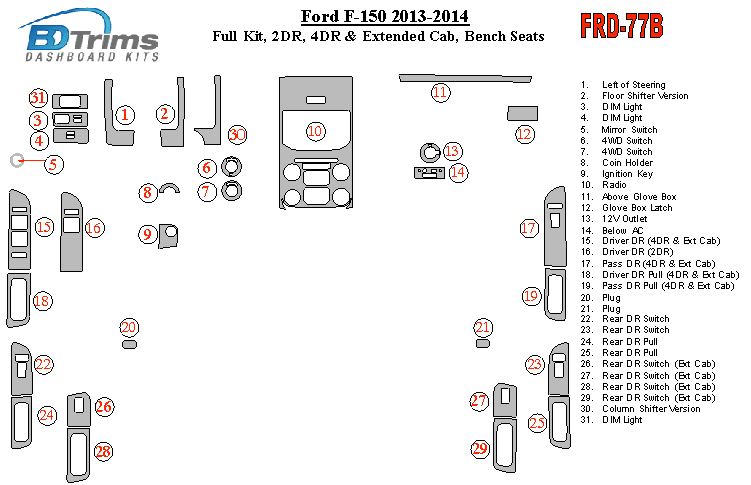 Ford F-150 2013 - 2014 Dash Trim Kit