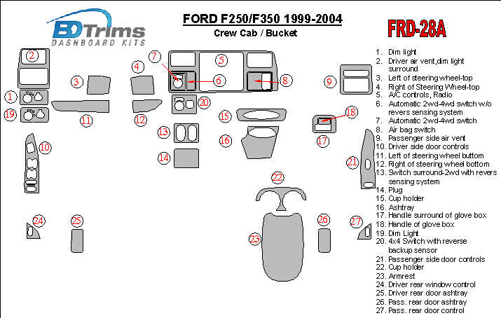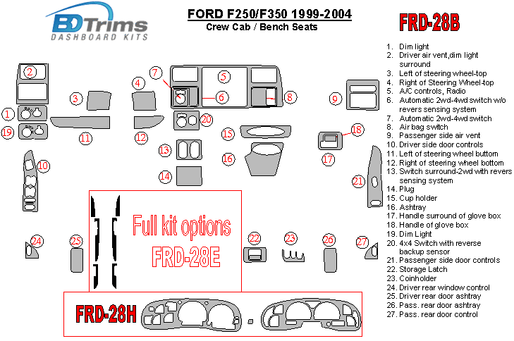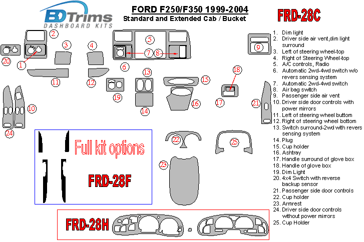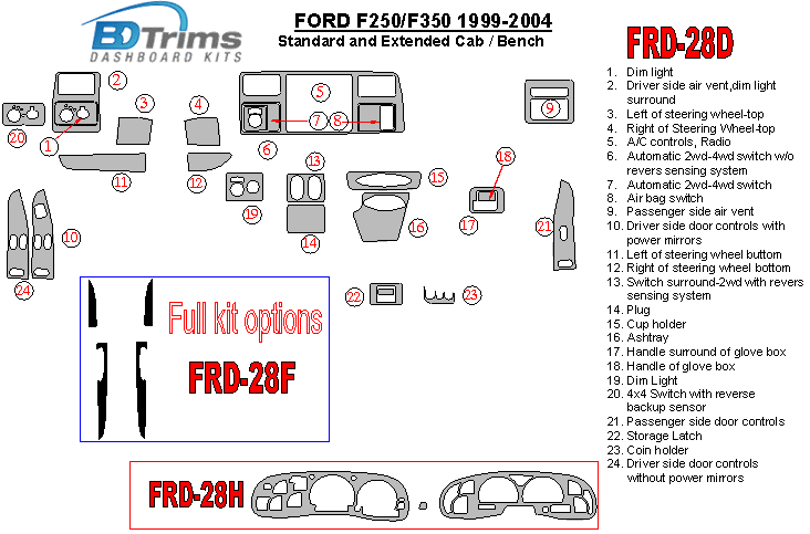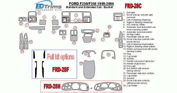 Ford F-250/350/450/550 1999 - 2004 Dash Trim Kit