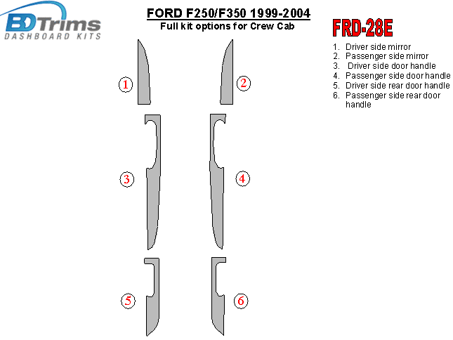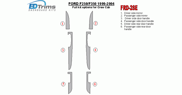 Door panels and mirror accents for Crew Cab, 6 Pcs.