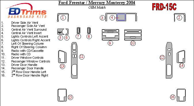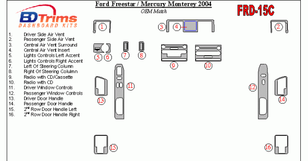 Ford Freestar 2004 - 2004 Dash Trim Kit