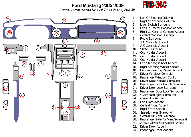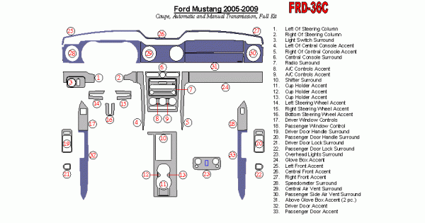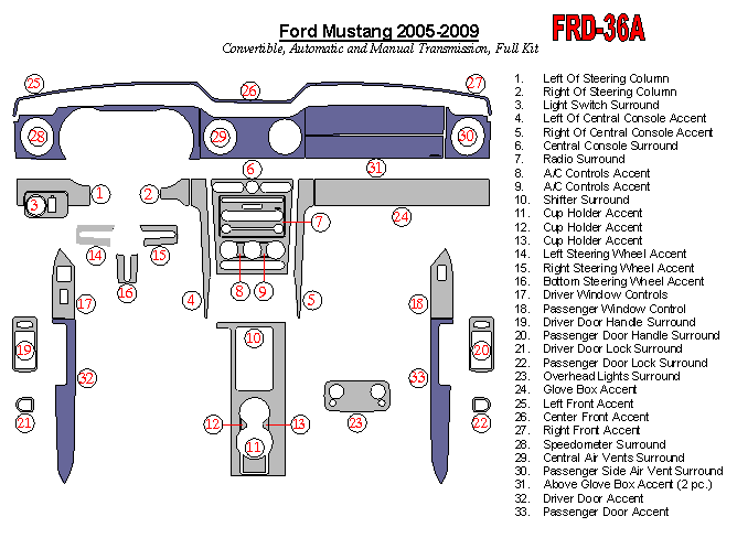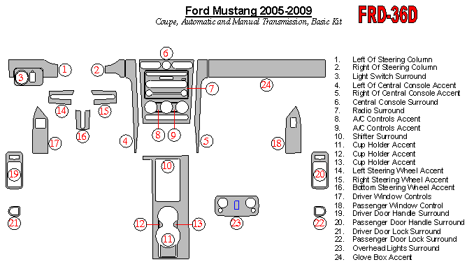 Ford Mustang 2005 - 2009 Dash Trim Kit