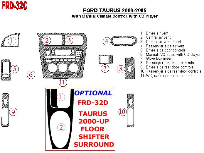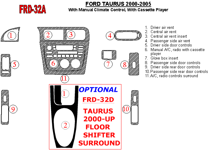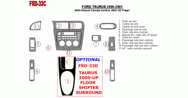 Ford Taurus 2000 - 2005 Dash Trim Kit