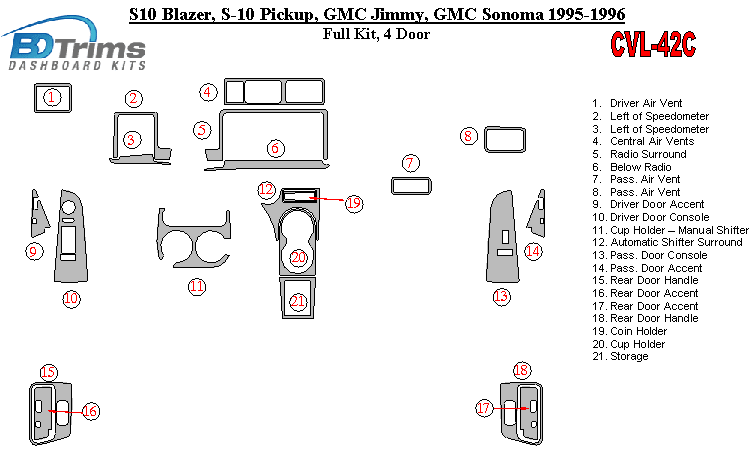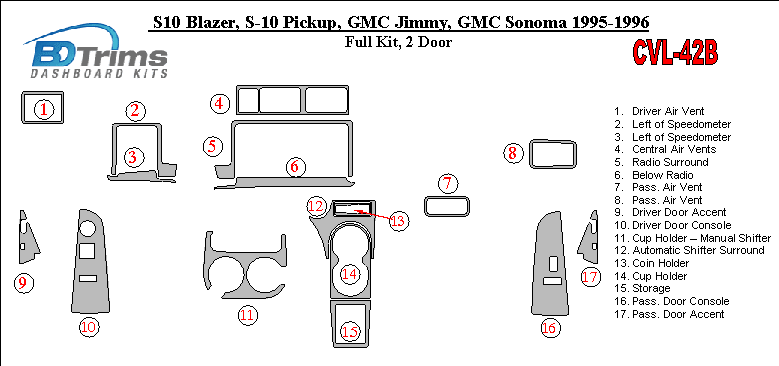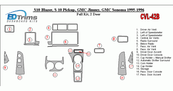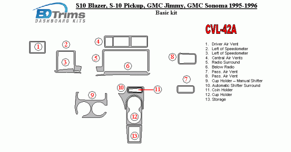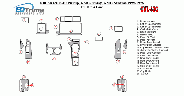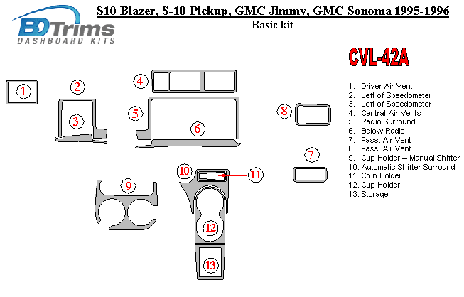 GMC Sonoma 1995 - 1996 Dash Trim Kit