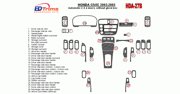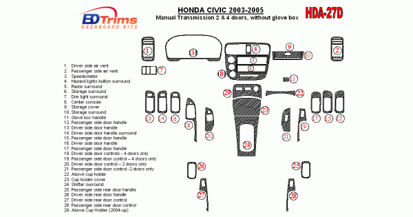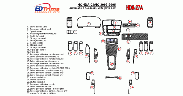 Honda Civic 2003 - 2005 Dash Trim Kit