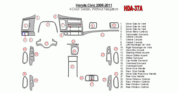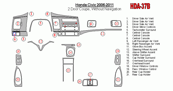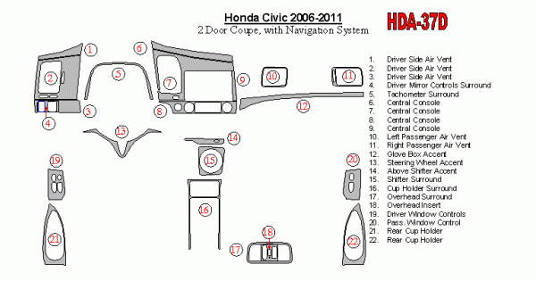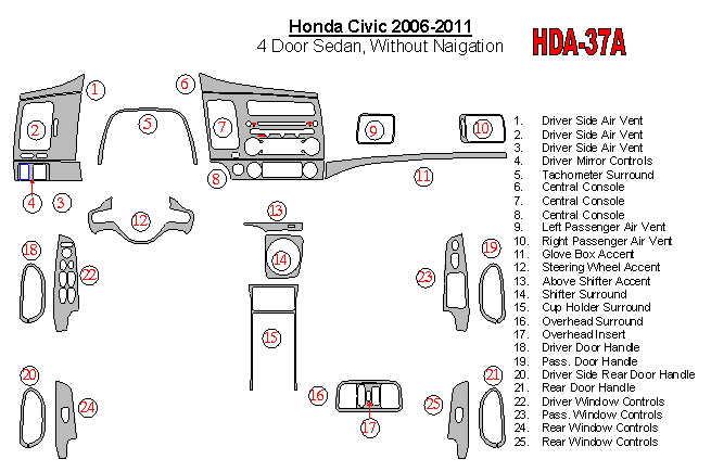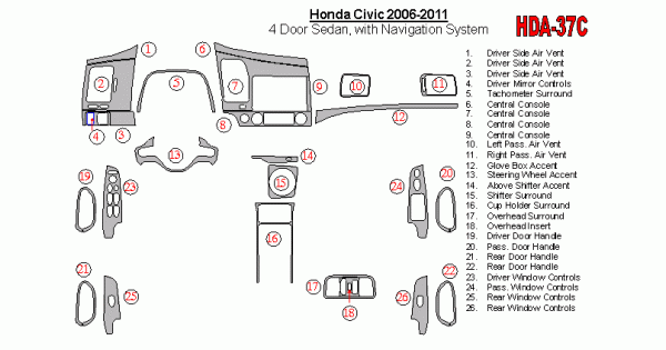 Honda Civic 2006 - 2011 Dash Trim Kit