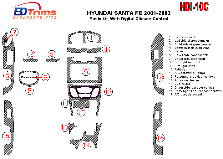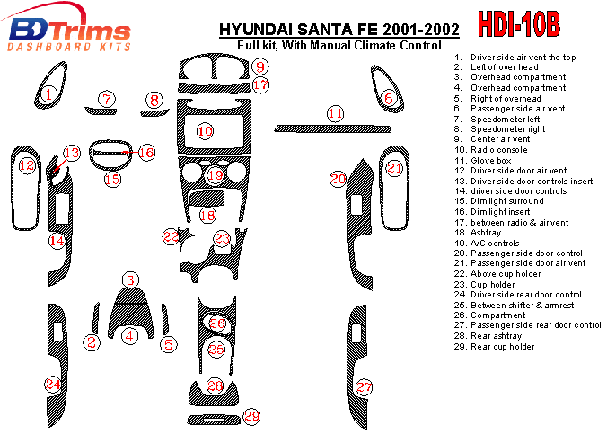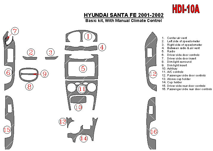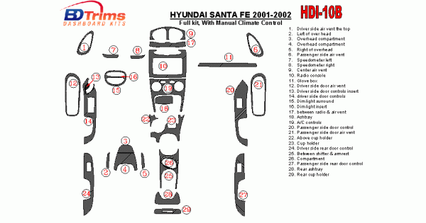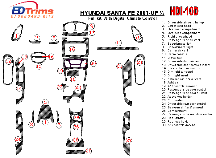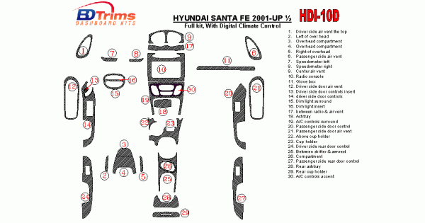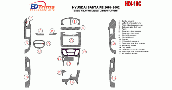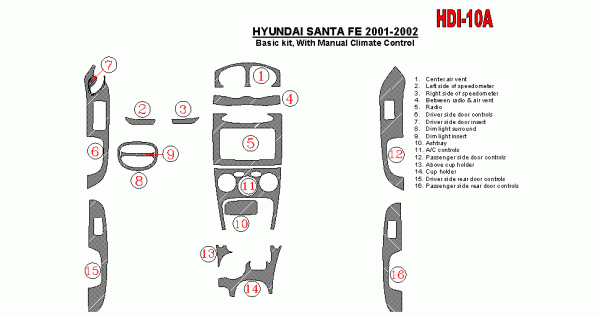 Hyundai Santa Fe 2001 - 2002 Dash Trim Kit