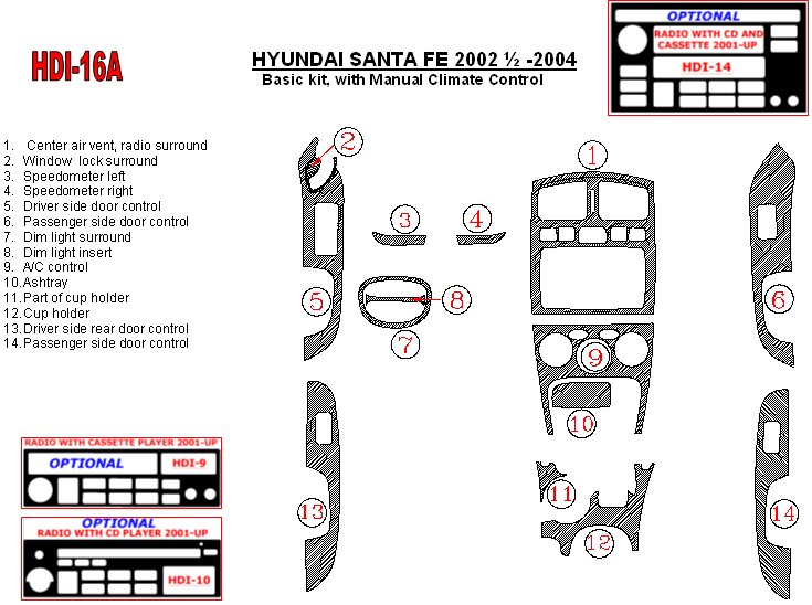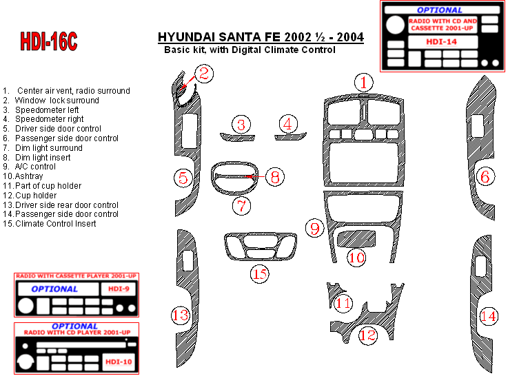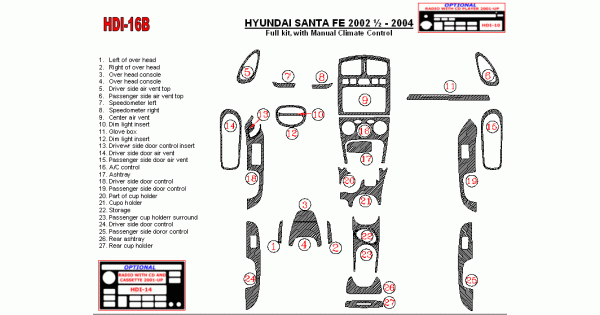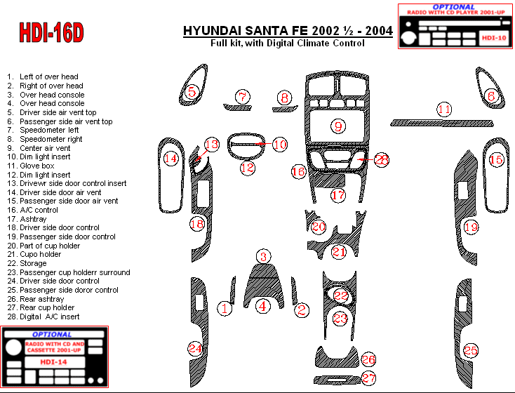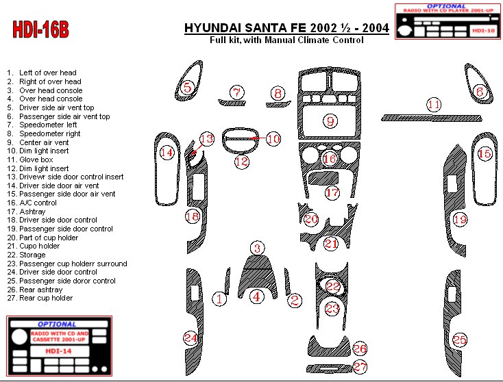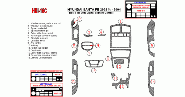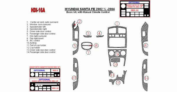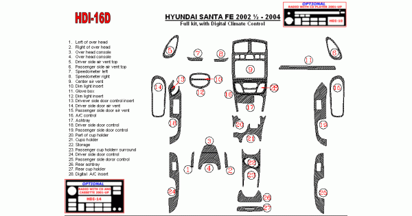 Hyundai Santa Fe 2002 - 2004 Dash Trim Kit